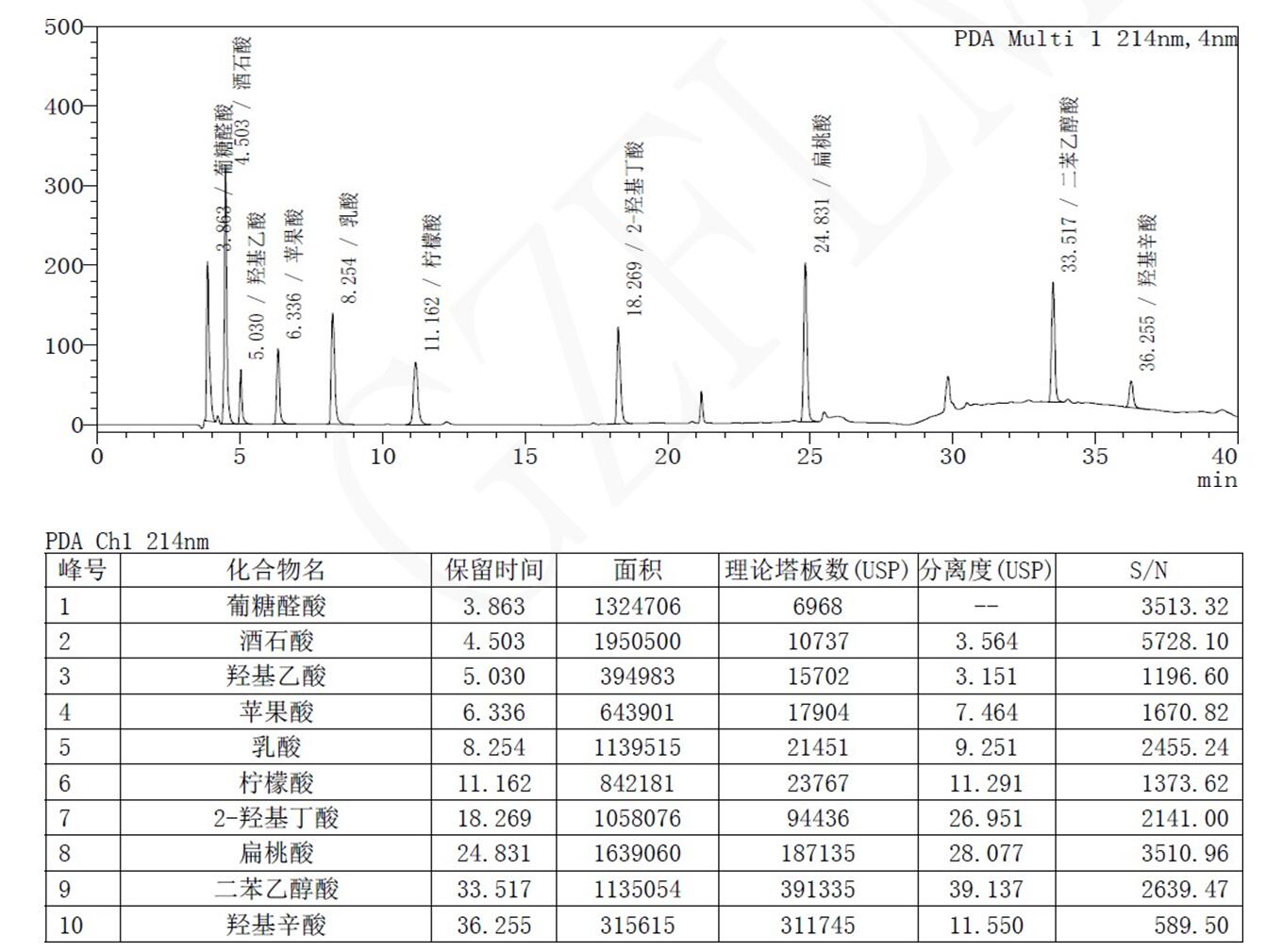 菲羅門(mén)液相色譜柱《化妝品安全技術(shù)規(guī)范》中 10 種α-羥基酸的檢測(cè)
