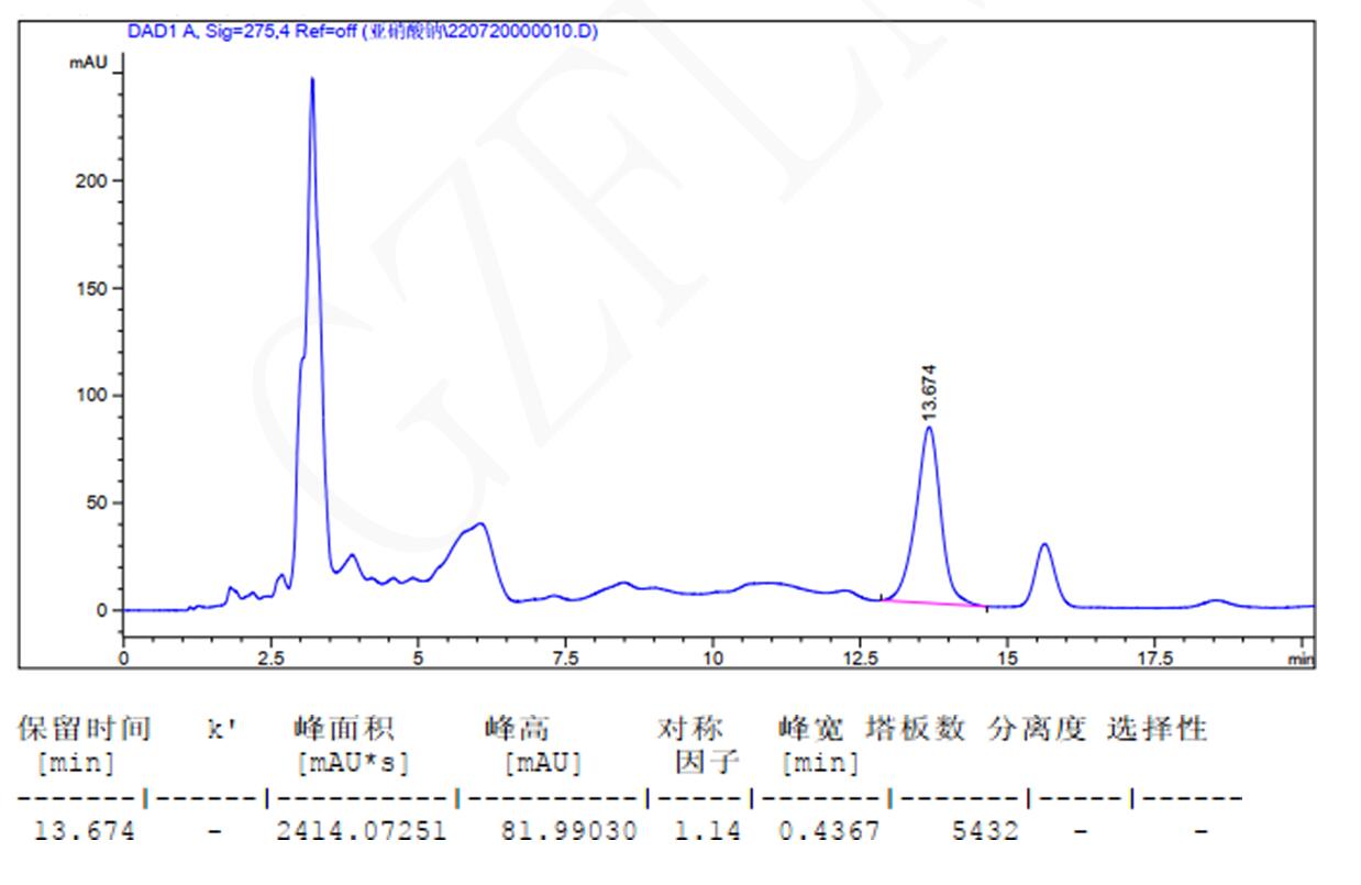 色譜柱:Titank C18 5μ 250*4.6mm(貨號:FMG-5556-EONU)