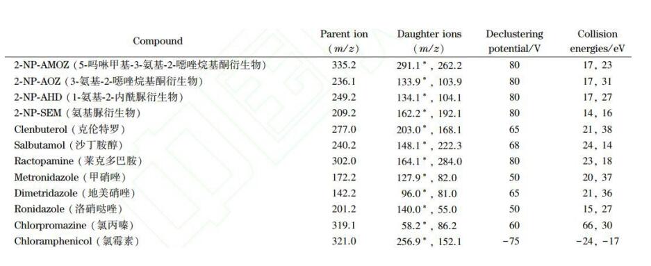 App ID: FLM-T240003 Titank C18 串聯(lián)質(zhì)譜法 12 種獸殘分析 (甲硝唑氯霉素氯丙嗪克侖特羅沙丁胺醇等) 色譜柱:Titank C18 3u 100*2.1mm 貨號:FMD-5559-BONU 流動相:A 乙腈 B 0.1%甲酸 流速:0.3ml/min 進樣體積:5 μL 柱溫:40℃