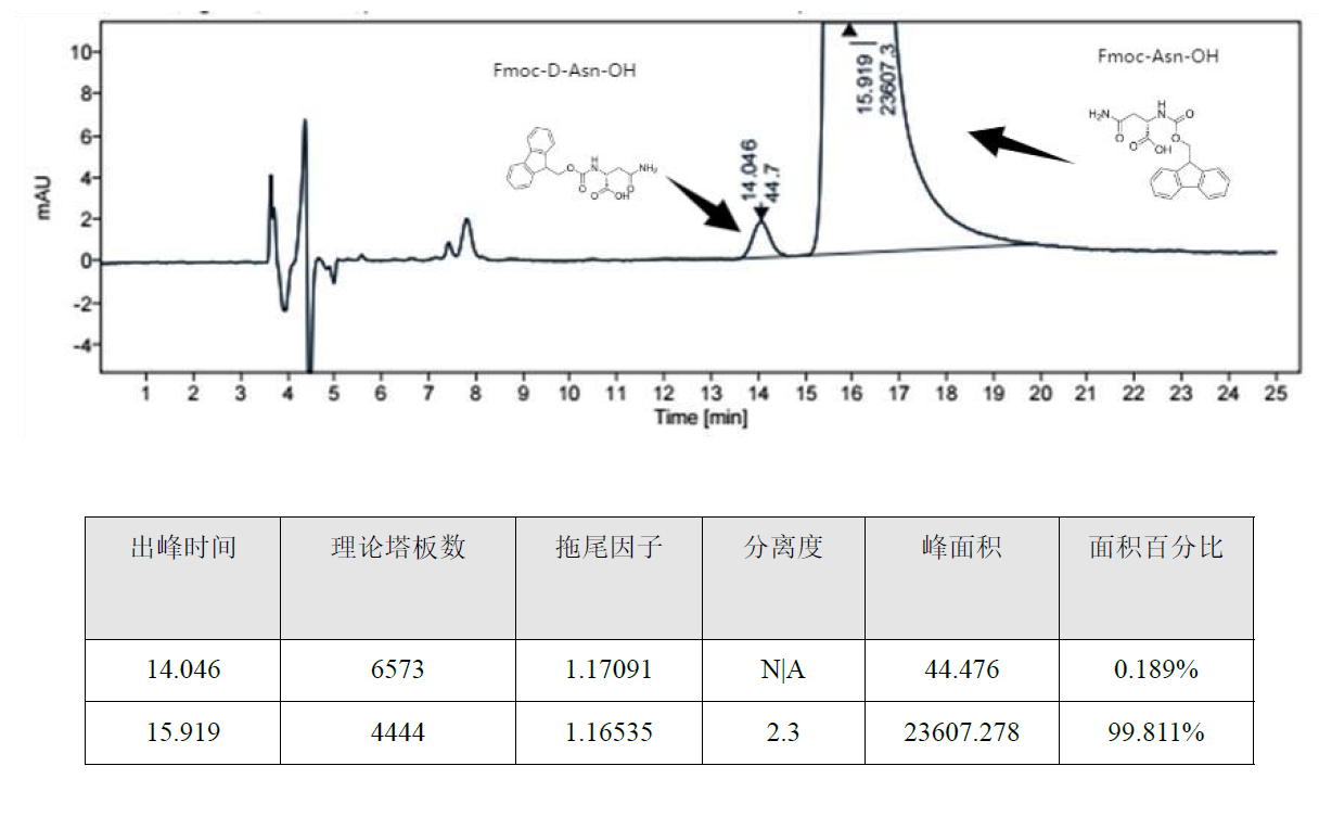App ID: FLM-B250007 Fmoc-L-天冬酰胺與Fmoc-D-天冬酰胺的手性分離 色譜柱:Chiral NQ(2)4.6*250mm,5um (貨號(hào):FMG-AC5-A06-NFC) 流速:0.8 mL/min 檢測(cè):UV,254nm 柱溫:35°C 樣品濃度:N/A 進(jìn)樣量:1μ 流動(dòng)相:咨詢銷售 色譜圖: ![]() |