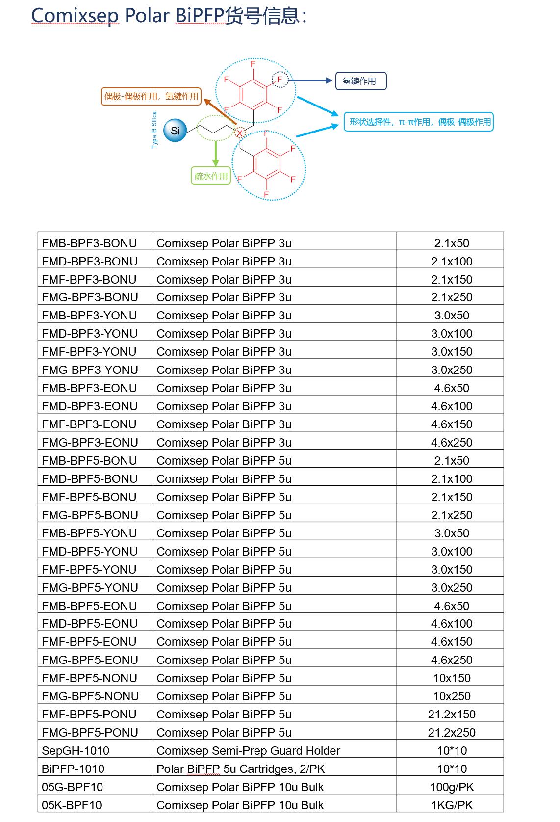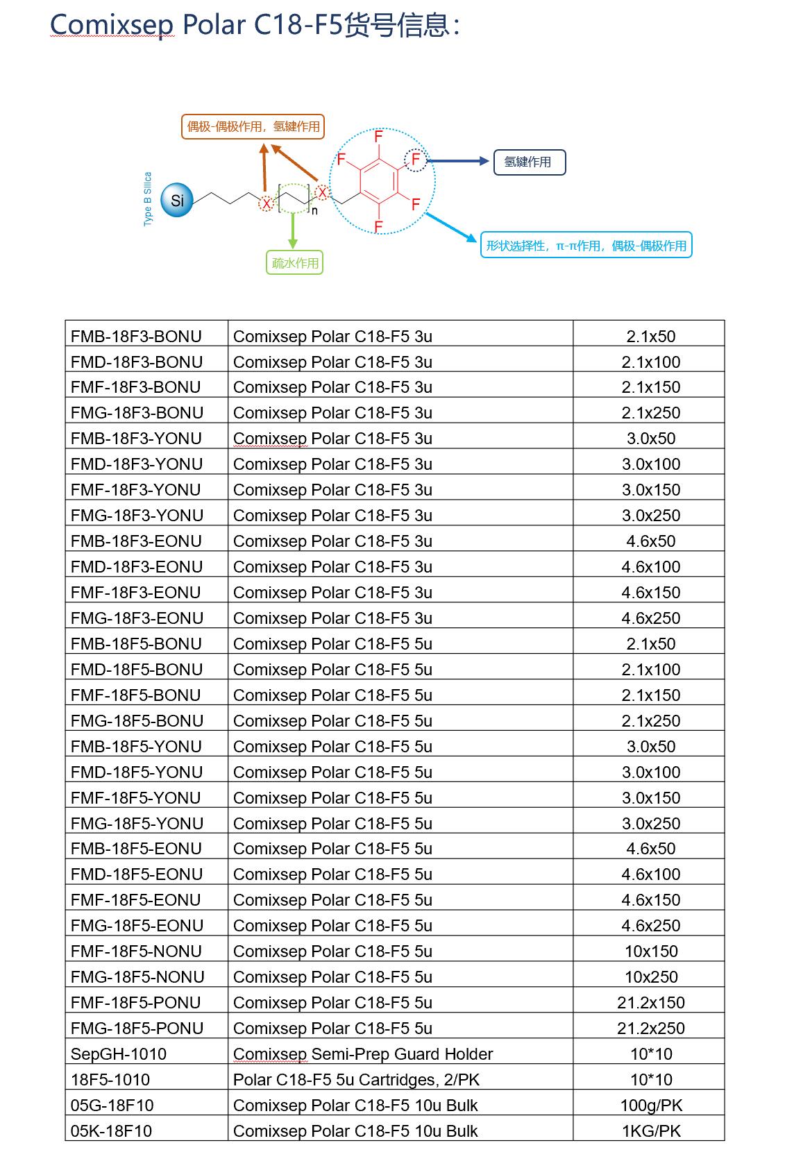 Comixsep復(fù)合反相固定相方法包貨號(hào)信息