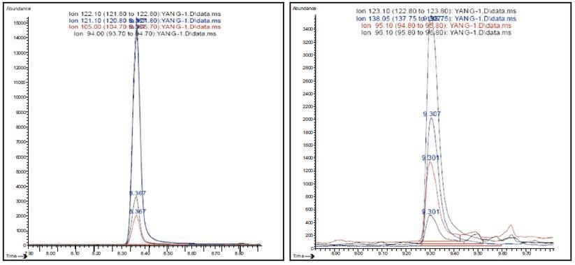 圖 5 2,4-二氨基甲苯色譜圖 圖 6 2,4-二氨基苯甲醚色譜圖